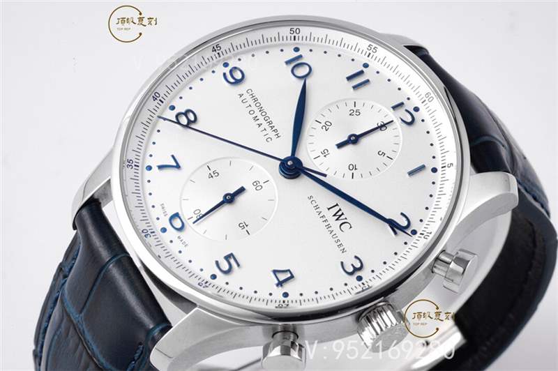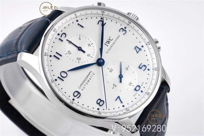 zf廠葡萄牙150周年采用了白色的漆面表盤,這是這款特別款最大的不同之處,非常漂亮。白色的表盤,通過精湛的漆面工藝層層上漆,我們知道,漆盤如果處理不好是很容易出現氣泡的,ZF廠進行了多層上漆,每層漆都非常薄,最后成品的觀感完全可媲美琺瑯表盤。表盤的布局沒有任何改變,依舊是采用了藍色阿拉伯數字時標以及外圍轉印60分鐘圈。3點鐘位為60秒小時盤,12點鐘位30分鐘計時分鐘盤。都采用藍色柳葉指針,精致優雅。普通款采用的是琺瑯盤,而紀念款采用的是烤漆盤,然后層層印刷,我們可以看到盤面字體的立體感很棒,盤面字體清晰立體。