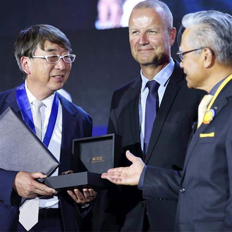 過去和UIA的合作讓MIDO與建筑的關(guān)聯(lián)不只是在產(chǎn)品面,連建筑盛會(huì)也親身參與。2017年的世界建筑師大會(huì)MIDO也以Braoncelli手表做為得獎(jiǎng)賀禮,當(dāng)年的金獎(jiǎng)得主是日本建筑師伊東豊雄(圖左),當(dāng)時(shí)的MIDO全球總裁Franz Linder(圖中)也現(xiàn)身頒獎(jiǎng)典禮共同祝賀。