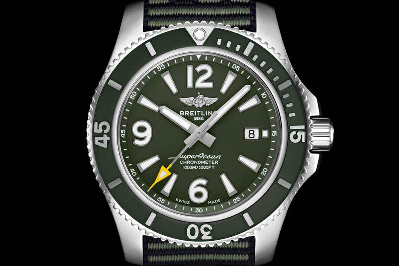 百年靈從字面上看綠色角度,深綠色表盤和表圈。手表的其余部分與標準的 Superocean 大致相同,即 44 毫米不銹鋼表殼和百年靈 17 口徑自動機芯,具有 38 小時動力儲存。