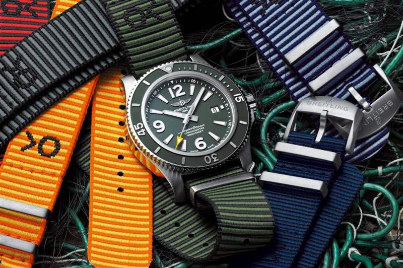 然而,主要事件是與新手表一起推出的表帶。環保的 ECONYL 表帶——由回收的海洋廢物、漁網等制成——有 6 種不同顏色可供選擇。它們的范圍從標準的黑色和藍色到亮黃色和紅色,并且有足夠的尺寸來適應任何百年靈手表。