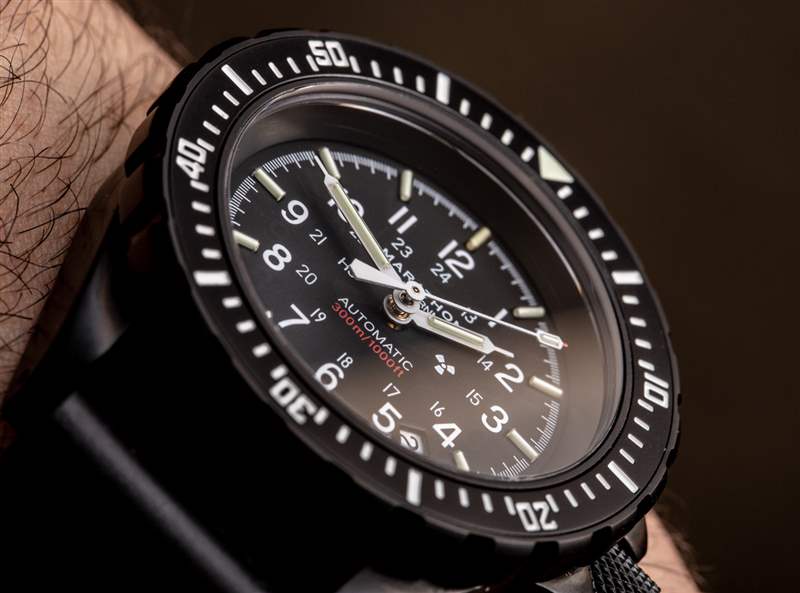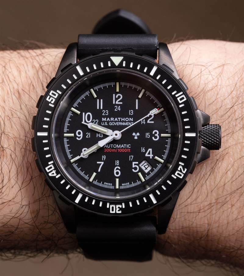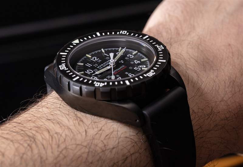 據(jù) Marathon 稱,為了獲得正確類型的持久黑色涂層應用,他們需要進行多輪實驗。在描述如何實現(xiàn)符合 Marathon 高標準的黑色應用時,“屁股疼”了好幾次。出于這個原因,目前還沒有與之匹配的黑色涂層鋼表鏈,但我相信它可能會出現(xiàn)。這將使 GSAR Knight Rider 看起來更具吸引力。