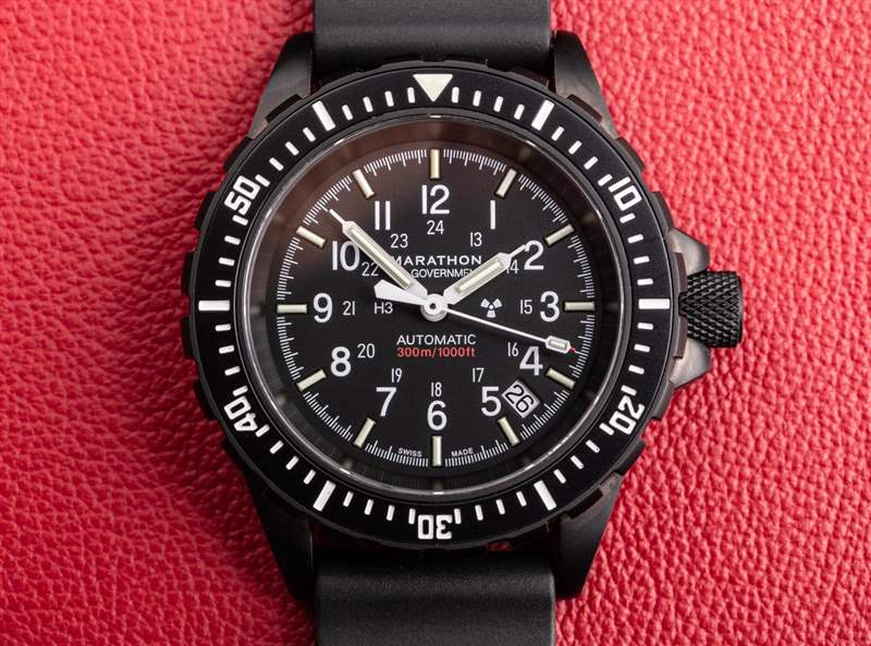 加拿大馬拉松手表公司目前只有一款“涂黑”手表,那就是無煙煤色涂層鋼大型潛水員自動“GSAR”41mm寬手表。我個人將這款馬拉松參考 WW194006BK 手表稱為“GSAR Knight Rider”,因為“300m / 100ft”文字的一條紅線讓我想起了黑色“KITT”改裝龐蒂亞克 Trans Am 上的彈跳紅燈。 1980年代的電視劇《騎士騎士》。Marathon 的 General Search & Rescue (GSAR) 手表是一款出色的工具式手表,值得注意的是它是一款罕見的現(xiàn)代時計,至今仍正式發(fā)行給各種政府活躍專業(yè)人士(包括一些精銳士兵)。這也意味著手表符合耐用性和功能性的軍用標準。