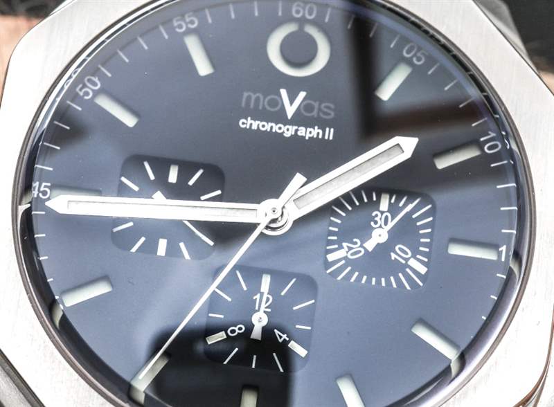 MoVas Military Chronograph II 是一款相當大而重的鋼制手表,采用 45 毫米寬的方形/墊形表殼,厚度也約為 17 毫米。MoVas 提供藍寶石水晶和有機玻璃水晶兩種選擇,這實際上是為了提供有機玻璃水晶所提供的獨特溫暖——但當然,并非所有買家都希望處理與藍寶石相比它更容易劃傷的事實。該表殼還可以防水 100 米——沒有旋入式表冠或旋入式按鈕——即使歐洲和日本品牌在許多方面都擊敗了 MoVas,也感覺制作精良。話雖如此,這感覺更像是一款高度精致的“項目”手表,而不是出廠時的東西,這或多或少是 MoVas 手表的樣子。