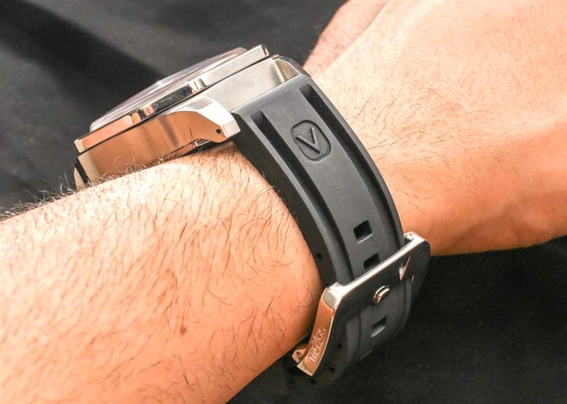 MoVas 為 MoVas Military Chronograph II 提供橡膠和皮革表帶選項。很高興有這樣的附加物品,但皮革表帶帶有一些皮帶扣式表扣,坦率地說不適合我的表帶和表殼。橡膠表帶較硬,這意味著它在彎曲時不那么靈活,但比善意但不可行的皮革表帶和表扣選項要好得多。截至目前,MoVas 網(wǎng)站為 Military II 提供了五種不同的表帶選項,鑒于像這樣一個小品牌的快速發(fā)展速度,我很確定在收到手表后的一年多內,我的特別表帶問題沒有實際意義。廣告訊息廣告信息結束