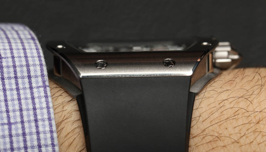 Richard Mille 并沒有試圖用 RM 67 打破任何記錄,而是該品牌的目標(biāo)是制造一款舒適且與眾不同的 Richard Mille 時(shí)計(jì),易于日常佩戴。表殼(不含表冠)寬 38.70 毫米,高 47.52 毫米。作為一款“超薄”腕表,理查德米勒 RM 67-01 的厚度為 7.75 毫米。同樣,這不是創(chuàng)紀(jì)錄的瘦身水平,但它肯定很苗條(只是不是“超薄”)。表殼飾面通常完美無暇,細(xì)節(jié)豐富,例如表冠等區(qū)域的邊緣斜角。除了您在這里看到的鈦金屬型號(hào)外,我很確定 Richard Mille RM 67 的 18k 玫瑰金版本(以及其他材料)即將推出。