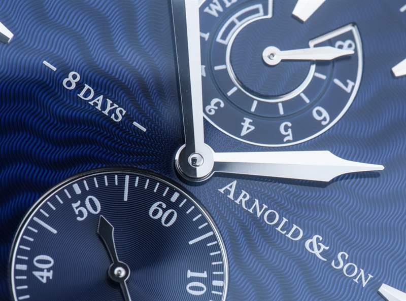 真正讓表盤與眾不同的是機刻扭索飾紋,然后上漆上色。“波浪線”風格的圖案(我敢肯定,這就是古代講法語的鐘表師對它們的稱呼—— “le squiggelle!”)很可愛,Arnold & Son 八天皇家海軍腕表的表盤也很漂亮提供藍色、黑色或銀色……以及漂亮的配套小牛皮表帶。廣告訊息廣告信息結束