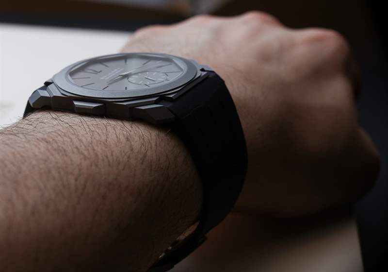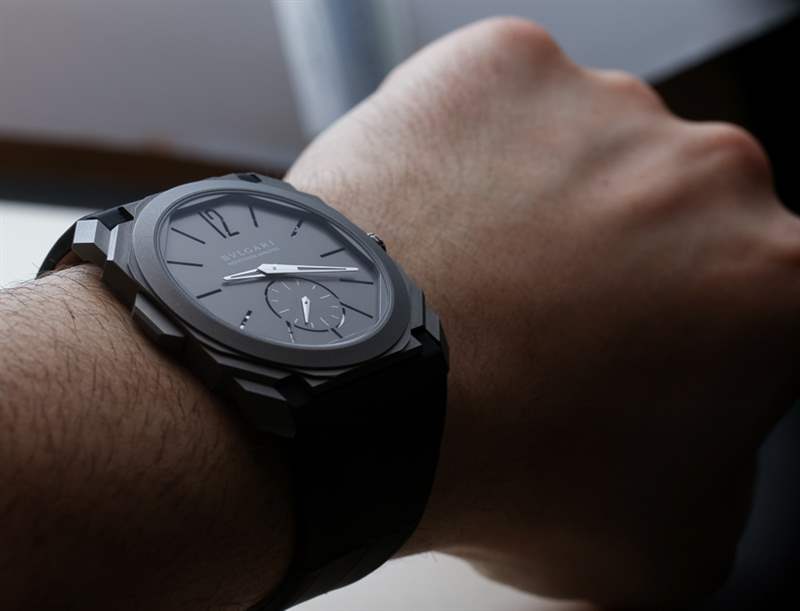 那么讓我們談談尺寸,因為這是一款破紀錄的手表。Bulgari Octo Finissimo 三問報時表殼厚 6.85 毫米,寬 40 毫米,采用涼爽的噴砂鈦材料制成。表冠也是鈦金屬,但經過拋光處理并鑲嵌有黑色凸圓形陶瓷。這比之前創(chuàng)下“最薄三問報時表”記錄的Vacheron Constantin Patrimony Contemporaine Calibre 1731 Minute Repeater 薄了超過一毫米,后者于 2014 年記錄了大約8.09 毫米厚的表殼。廣告留言廣告信息結束