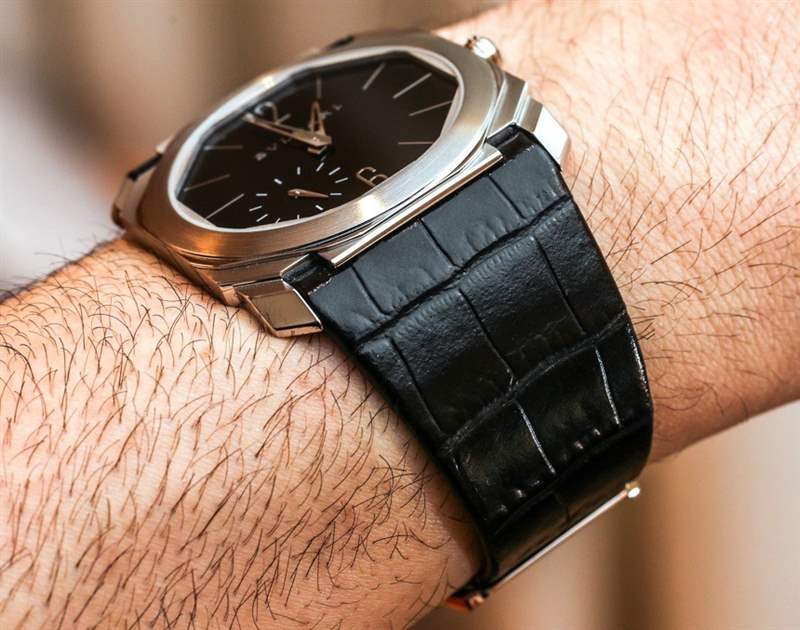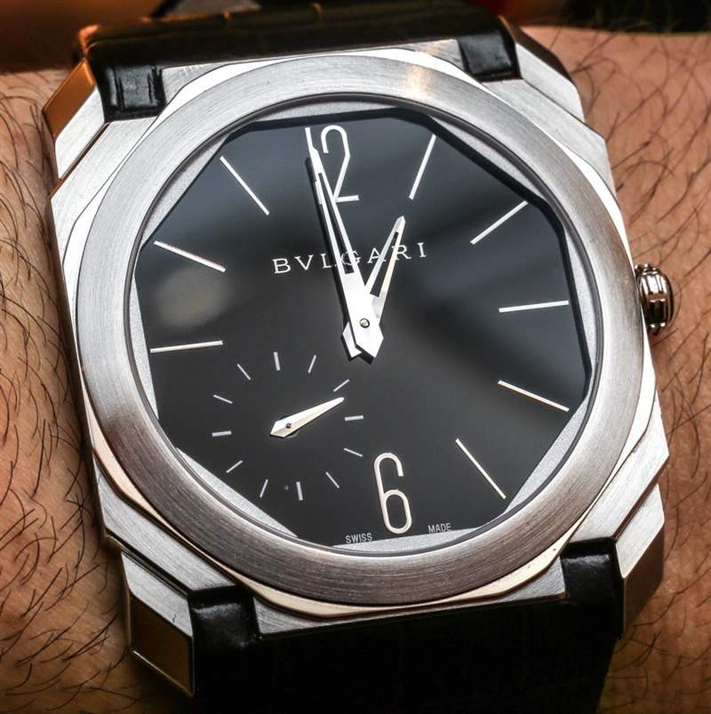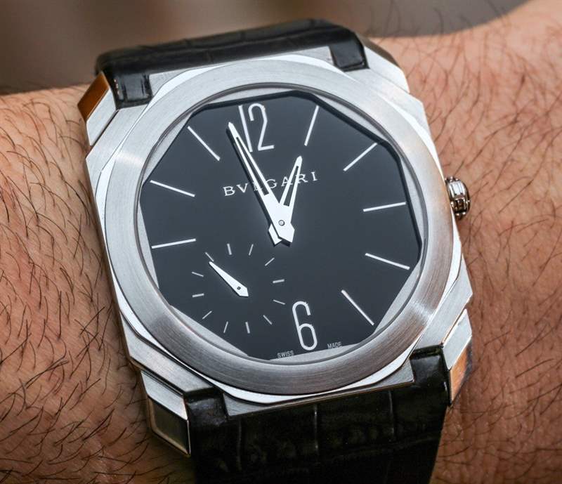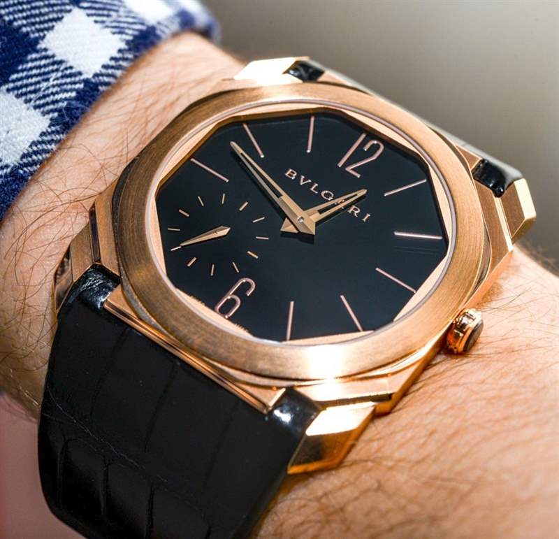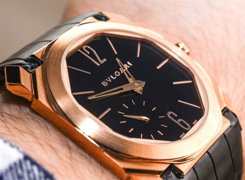 寶格麗 (Bulgari) 改進(jìn)了表盤(pán)的易讀性,最初采用超亮黑漆表盤(pán)和拋光立體時(shí)標(biāo)和指針。事實(shí)上,金色的表盤(pán)看起來(lái)特別漂亮——但話(huà)說(shuō)回來(lái),Octo 風(fēng)格的表殼在鋼/白金/鉑金色調(diào)中看起來(lái)確實(shí)非常漂亮。您可能想知道 Octo 表殼(通常較厚)是什么樣子……好吧,“扁平”。我有點(diǎn)擔(dān)心這一點(diǎn),但在大多數(shù)方面,標(biāo)準(zhǔn) Octo 的表殼幾乎完全相同——只是薄了幾毫米。保留了有吸引力的對(duì)比拋光,主要是拉絲表面,但也有一些從側(cè)面最容易注意到的漂亮拋光表面。鑲嵌在表冠上的是黑色凸圓形陶瓷。廣告留言廣告信息結(jié)束
