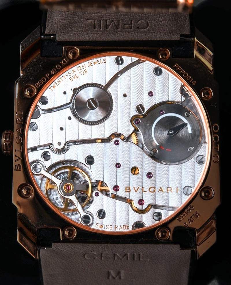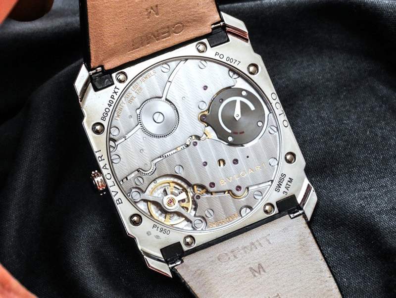 BVL 128 機(jī)芯以現(xiàn)代 4 赫茲頻率運(yùn)行,并具有 70 小時(shí)的長(zhǎng)動(dòng)力儲(chǔ)存(對(duì)于如此薄的機(jī)芯)。機(jī)芯通過(guò)偏心小秒盤(pán)指示小時(shí)和分鐘。奇妙的是,寶格麗決定在機(jī)芯后部加入一個(gè)動(dòng)力儲(chǔ)存指示器——這一功能對(duì)我來(lái)說(shuō)真的提升了“想要”的水平,因?yàn)槲矣X(jué)得動(dòng)力儲(chǔ)存指示器幾乎是必須的(主觀選擇)手動(dòng)上弦手表。否則,我只是一直強(qiáng)迫性地給手表上弦。