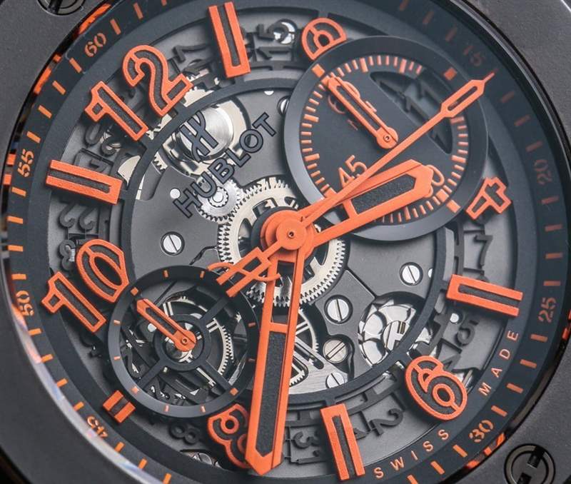 我最喜歡與 Hublot Big Bang UNICO 一起做的事情之一就是通過(guò)表盤和底蓋觀察機(jī)芯。宇舶表巧妙地將表盤設(shè)計(jì)成不僅是開放的,而且非常清晰易讀。很少有 Hublot 時(shí)計(jì)難以讀取。該公司了解高對(duì)比度、清晰易讀的表盤的重要性,讓您可以輕松讀取時(shí)間。當(dāng)您有一個(gè)打開的表盤可以看到機(jī)芯部件時(shí),這項(xiàng)任務(wù)會(huì)變得更加復(fù)雜——通常,眼睛會(huì)在表盤和機(jī)芯元件之間分散注意力,這往往會(huì)導(dǎo)致易讀性差。我認(rèn)為,尤其是這款黑色和橙色的“萬(wàn)圣節(jié)”限量版 Hublot Big Bang UNICO,您可以看到可讀性對(duì)于 Hublot 來(lái)說(shuō)是多么重要。