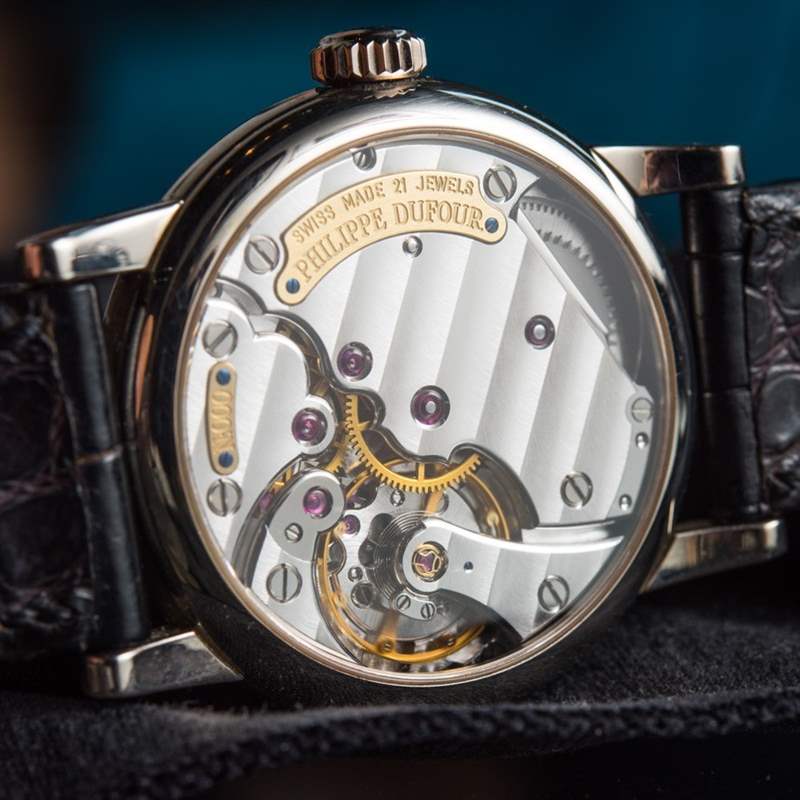 精加工。這就是 Philippe Dufour 最出名的地方。這個人像其他活著的人一樣拋光金屬。老實說,沒有任何瘋狂的把戲。Philippe Dufour 腕表的機芯美得令人嘆為觀止,因為他為此付出了必要的時間和精力。他的技術也不差,你不能抹殺大量的天賦,但 Philippe Dufour 投入了必要的時間和精力,使他最簡單的手表機芯看起來最好。他不能偷工減料,不能趕進度。制作 Philippe Dufour 手表需要時間,因為每一塊手表都需要大量的時間才能完成——很少有人愿意花同樣的時間。這不是營銷噱頭,也不需要拉動天鵝絨窗簾繩來“大顯身手”?!?魅力在于物品本身和制作它的人。故事結局。