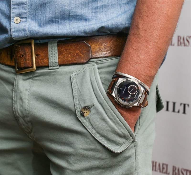 Michael Bastian 告訴我,他深受汽車儀表板儀表外觀和觸感的啟發(fā)。他喜歡許多現(xiàn)代汽車將技術(shù)與熟悉的東西結(jié)合在一起的方式,因?yàn)樗鼈兘Y(jié)合了模擬指針和數(shù)字屏幕。出于這個(gè)原因,Michael Bastian MB Chronowing 表盤有一個(gè)專門的時(shí)間顯示,在 LCD 屏幕上使用模擬指針。實(shí)際上,這個(gè)屏幕有時(shí)也會(huì)顯示其他信息。手表背面的底蓋上深深刻有邁克爾·巴斯蒂安 (Michael Bastian) 的“翅膀”標(biāo)志。在大多數(shù)情況下,質(zhì)量優(yōu)于大多數(shù) 350 美元的手表。事實(shí)上,我要說的是,許多生產(chǎn)“時(shí)尚”智能手表的科技公司在質(zhì)量方面確實(shí)給傳統(tǒng)時(shí)尚手表行業(yè)帶來了嚴(yán)重的經(jīng)濟(jì)損失。