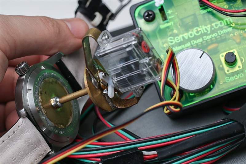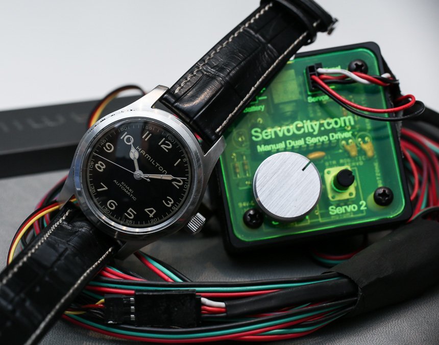 電影迷們一定很想知道《星際穿越》是如何通過秒針實現(xiàn)“摩爾斯電碼”復雜功能的。漢密爾頓告訴我,道具大師實際上能夠部分解構(gòu)機芯并插入一個小型伺服電機來移動秒針,就像電影中那樣。沒有涉及計算機圖形。然后他們能夠再次將運動重新組合在一起。這里看到的手表就是其中一款手表,它的機芯中有一些凝膠,可以防止它有意運行。您還可以看到返還給漢米爾頓的手表配備了伺服電機——手動操作以創(chuàng)建電影中的“摩爾斯電碼”場景。