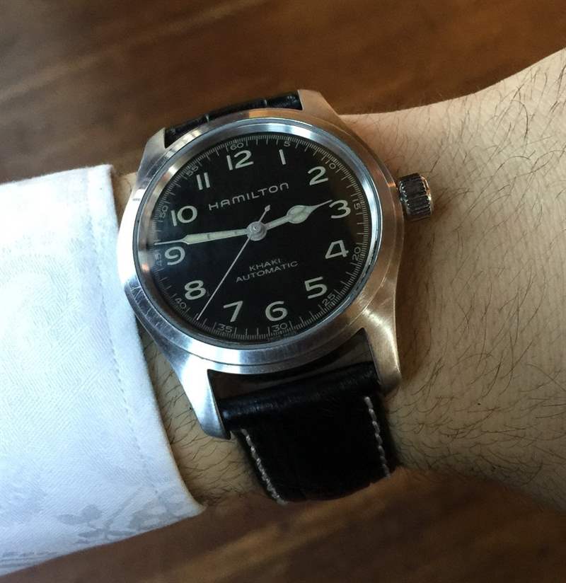 Interstellar希望推出具有美國特色的非常傳統(tǒng)的“工具風格”時計。Murph 手表的鋼制表殼寬 42 毫米,經(jīng)過全面打磨處理,呈現(xiàn)漢密爾頓稱之為“粗糙”的外觀。簡單的階梯式表圈和大表冠讓人聯(lián)想到更經(jīng)典的時計。卡其系列風格的表盤是黑色的,帶有做舊的夜光,并且沒有日期窗口,因此非常對稱。目前,Hamilton 不提供任何表盤上沒有日期窗口的 Khaki 手表,我強烈建議他們生產(chǎn)一款(即使是作為測試)很可能會帶來很好的銷量,因為表盤非常漂亮和清晰. 手表內(nèi)部是瑞士 ETA 2824-2 自動機芯。廣告留言廣告信息結(jié)束