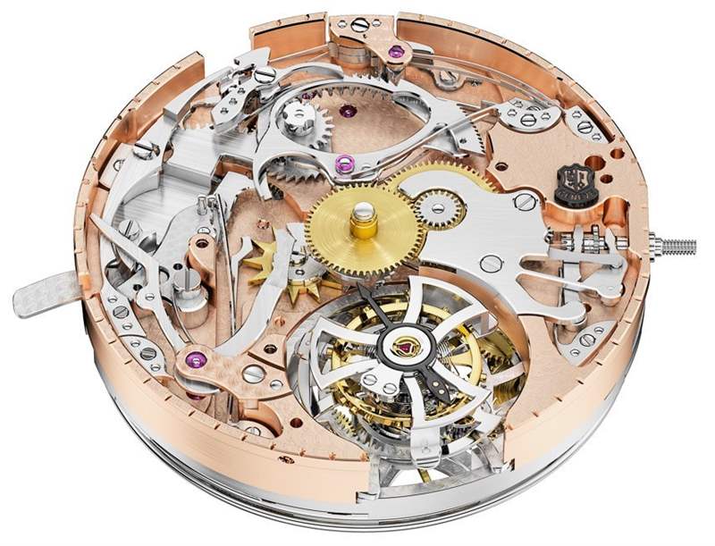 Roger Dubuis Hommage Minute Repeater Tourbillon Automatic 就是這樣一款生動復(fù)雜的機械機芯,將陀飛輪與三問報時相結(jié)合,并提供自動上弦功能。后一個元素非常有趣,因為這款手表具有“雙微型轉(zhuǎn)子”。世界衛(wèi)生大會…?沒錯,Roger Dubuis Hommage Minute Repeater Tourbillon Automatic 沒有一個完整的擺陀或一個較小的微型擺陀,而是有兩個微型擺陀。為什么?好吧,我不完全確定,Roger Dubuis 并未聲稱對此有任何特別的功利目的。我認(rèn)為他們之所以這樣設(shè)計,是因為羅杰杜彼有點前衛(wèi)。這么說吧,這不是我第一次看到雙微型擺陀了……在機芯背面有兩個較小的擺陀在旋轉(zhuǎn),這看起來確實很獨特。廣告留言廣告信息結(jié)束