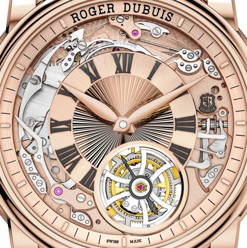 關(guān)于 Roger Dubuis Hommage Minute Repeater Tourbillon Automatic,我最喜歡的部分是表盤。機芯很漂亮,它提供的鏤空效果恰到好處,可以欣賞到機械裝置,但又不會多到你無法真正看清表盤的程度。這是一個非常好的組合,既確保了時計清晰易讀,又讓像我這樣的機械書呆子能夠看到裝飾精美的機芯。羅杰杜彼 (Roger Dubuis) 甚至提供了一個關(guān)于機芯的罕見事實,據(jù)他們稱,制造機芯所需的 1,241 小時中有 328 小時用于手工打磨和拋光。