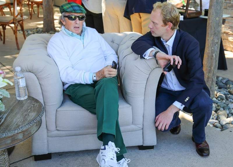 杰基·斯圖爾特爵士頒發勞力士手表圓石灘優雅大賽冠軍,杰·雷諾宣讀他們的名字。
