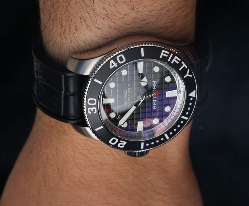 Red8USA Forty 手表稍后可能會有自己的文章,因為它們的主題有點不同,因為它們結合了潛水表的外觀和施華洛世奇寶石鑲嵌時標。它們實際上比聽起來更酷。現在,我將重點介紹鋼質 Fifty 潛水表和鈦質潛水表。廣告留言廣告信息結束