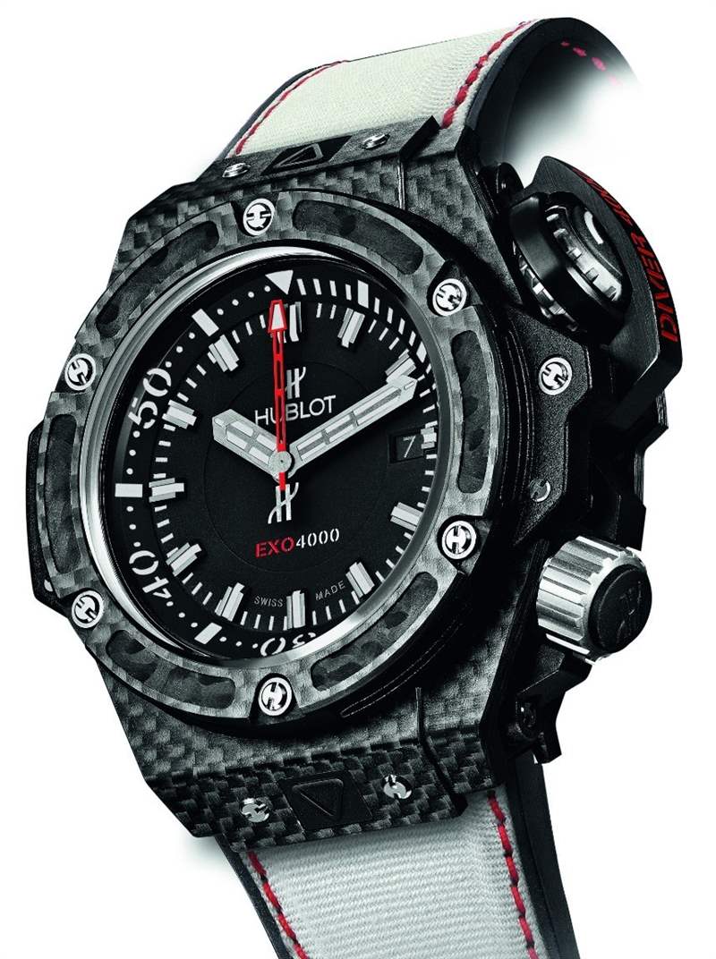 對(duì)于這款特殊的 Exosuit,Hublot 不僅將他們的標(biāo)志貼在身上,而且還在手臂上綁上了他們的 Oceanographic Chronograph 4000m Dive 手表之一。具有諷刺意味的是,這款手表的額定潛水深度比 Exosuit 的額定潛水深度要深得多,此時(shí) Exosuit 的額定深度為 1000 英尺(約 300 米)。如果 Exosuit 能夠潛得更深,以便 Hublot 或其他品牌能夠以James Cameron Rolex Deepsea Challenge的風(fēng)格在其上測(cè)試他們的潛水表,那將是非常令人印象深刻的。