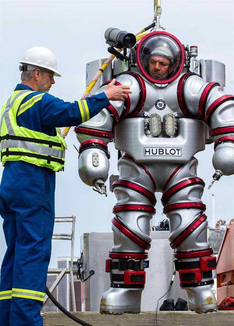 為了協(xié)助科學(xué)家,有人獲得了套裝。什么是套裝?它是一種相對(duì)較新的載人潛水服,將傳統(tǒng)的蒸汽朋克潛水服提升到了一個(gè)新的水平。該套裝由溫哥華的 Nuytco Research 設(shè)計(jì)。JF White Contracting公司至少購(gòu)買了一個(gè)這樣的手表,似乎是借給或租給不同的團(tuán)體——比如 Hublot 正在與之合作的團(tuán)隊(duì)。