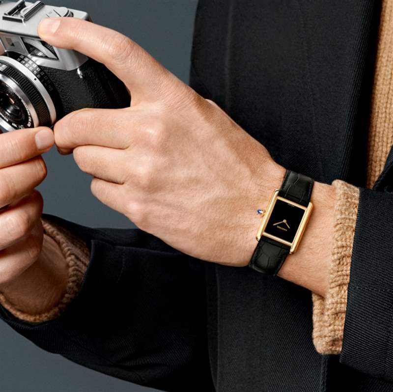 筆者的心水之選則是這枚配上黃金表殼的Tank Louis Cartier Watch,表面是最精簡的「無字天書」,而金殼與黑面這個組合,感覺既懷舊,但又不失時尚感;最后在表冠鑲嵌一顆凸圓形藍寶石,注入卡地亞的經典優雅。腕表厚度更纖薄至6.6mm,上手貼服舒適,這要歸功于厚2.9mm的1917 MC手動上鏈機芯,造就纖薄手感,襯衫自然更無慮。