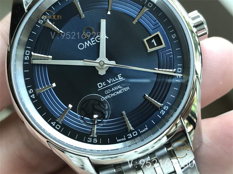 盤面的藍色基本達到一模一樣,不存在色差,這在有色盤面里面很難得。這里,我們列舉了其他市場版本的對比圖片,一眼就能看出來,其他版本的顏色上是有差距的,顏色太沉,下圖右側(cè)為VS廠的明亮之藍,盤面藍色且VS呈現(xiàn)出來的是和正品一致的清晰的直線紋路,我們放大圖片可以清晰的看到紋路。此次VS廠的明亮之藍制勝的原因不僅僅是機芯,盤面做工同樣是他勝出重要原因,這個盤面包含了藍色的調(diào)試,刻度釘?shù)睦z拋光,軌道圈,金屬日歷窗等各個組成部分,每一個部位都到做到多次打版調(diào)校,并且完美契合才能做出這么優(yōu)質(zhì)的藝術(shù)效果。
