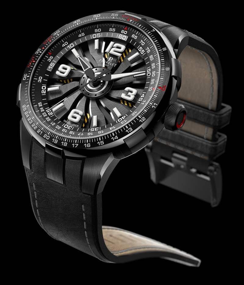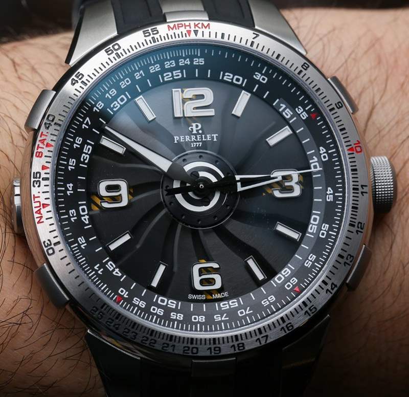 aBlogtoWatch于 2009 年在這里親身體驗了最初的 Turbine Pilot 手表。要了解它,您首先需要熟悉 Perrelet 的雙轉子概念?;旧?,許多 Perrelet 手表都有一個旋轉轉子,連接到手表后部的自動轉子,用于為機芯自動上弦。Perrelet 之所以這樣做,是因為他們自稱是自動手表的發(fā)明者,并且覺得在表盤上顯示一個實際上與機芯中的轉子相連的轉子很酷。Perrelet 隨后與一位外部設計師合作,提出了渦輪手表的概念,他們將安裝在表盤上的轉子變成了噴氣發(fā)動機渦輪式元件,隨著手腕的運動而旋轉。廣告留言廣告信息結束