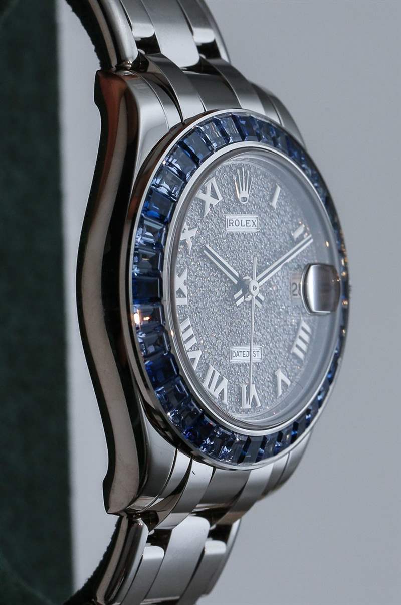 所以這些圖片是兩款新款 Datejust Pearlmaster 34 手表的圖片,它們將包含 2236 機芯。Datejust 的 Pearlmaster 版本具有獨特的手鏈和其他一些獨特的功能。當(dāng)然,這些特征通常包括寶石裝飾和貴金屬表殼和表鏈結(jié)構(gòu)。不出所料,2014 年的日志型 Pearlmaster 34 將采用 18k 黃金、白金或玫瑰金。白金款鑲嵌藍(lán)寶石,黃金款鑲嵌鉆石,玫瑰金 (Everose) 款鑲嵌紅寶石。所有型號均配備全鑲鉆表盤。廣告留言廣告信息結(jié)束