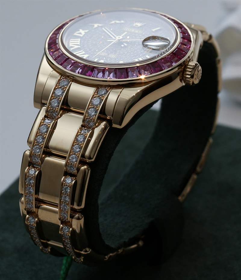 作為珠寶手表,有很多值得欣賞的地方。例如,在應(yīng)用小時刻度之前,表盤是手工鑲嵌鉆石的。如果您仔細(xì)觀察表圈,您會發(fā)現(xiàn)勞力士在每個時標(biāo)點選擇顏色稍深的寶石。當(dāng)然,所有寶石均由勞力士內(nèi)部手工鑲嵌,品質(zhì)卓越。每款 Pearlmaster 腕表均可選配鑲鉆手鏈。
