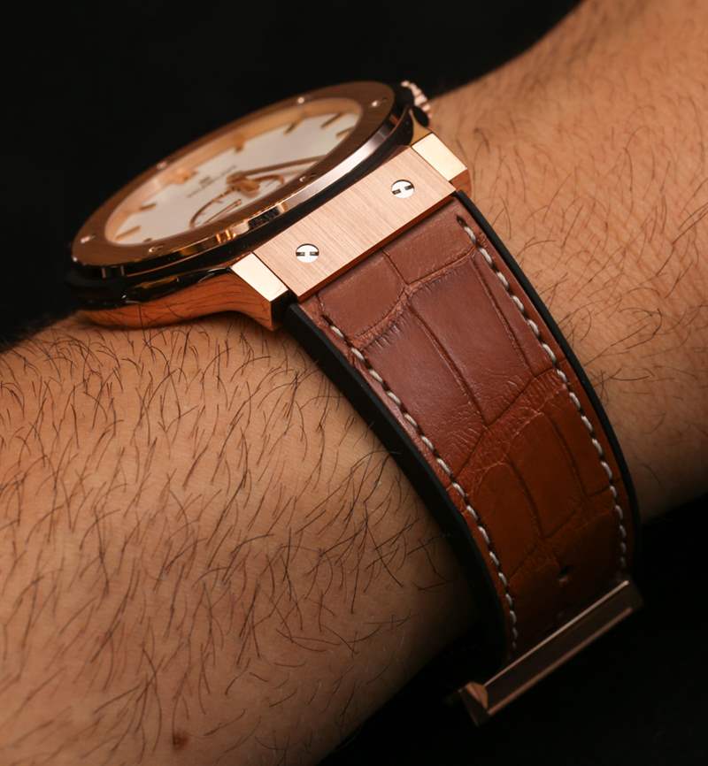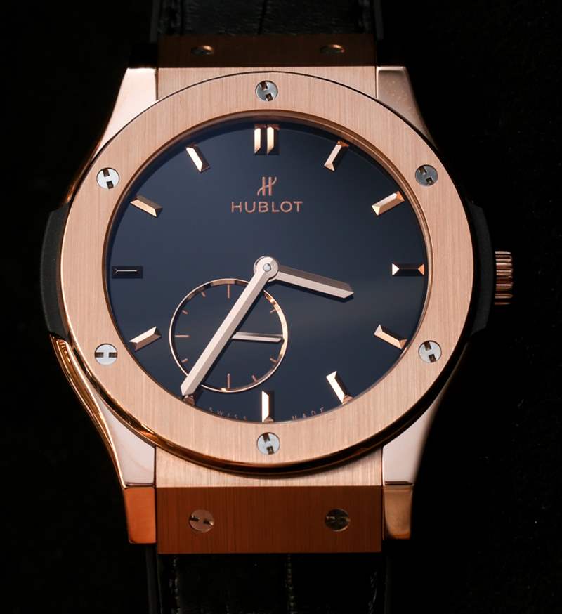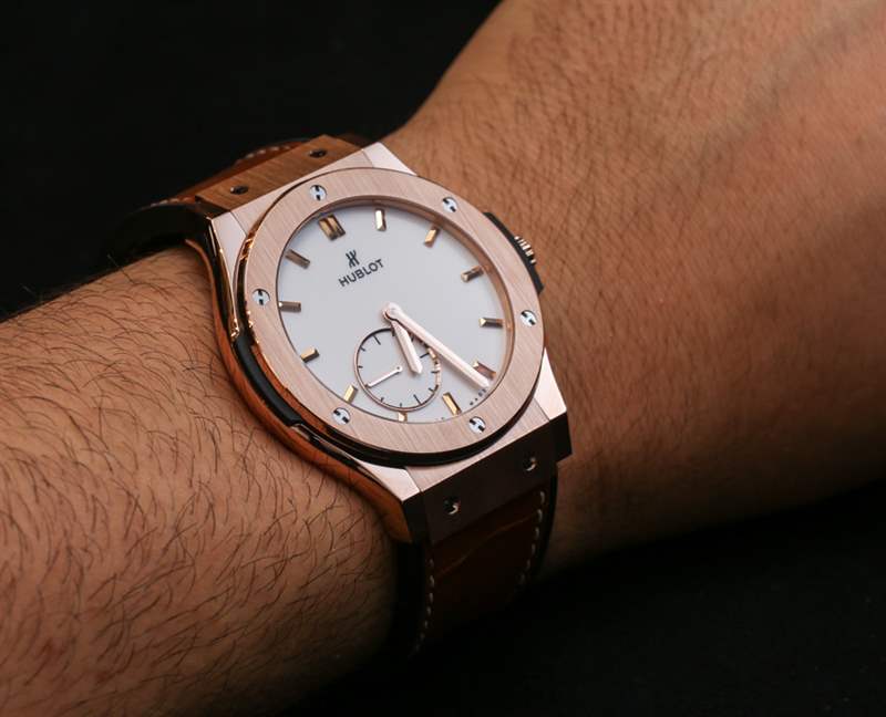 Classic Fusion 系列并不新鮮,但 Hublot 一直在嘗試并完善它。這個系列是我最喜歡的系列之一,感覺就像是“真正的”Hublot 正裝手表。42 毫米寬,既不太小也不太大。Hublot 提供 18k 王金(類似于紅金)或鈦金屬表殼,在設計上是非常經典的 Hublot。這種情況與您希望 Hublot 一樣“超薄”。說真的,如果它是 Piaget Altiplano-thin,它看起來會很傻。機芯厚度僅為 2.90 毫米,表殼厚度可能是它的兩倍。它在手腕上感覺纖細而且非常舒適,比 45 毫米寬的 Classic Fusion 版本更適合大多數手腕。