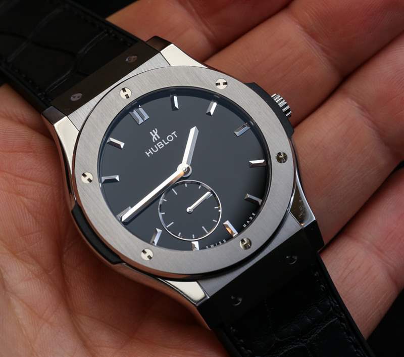 說到機芯,Classic Fusion 超薄 42 毫米閃亮表盤包含一個名為 Hublot HUB 1301(又名 HUB1301.4)的自制 HUB 1300 系列機芯。手動上鏈,該機芯僅提供帶有輔助秒盤的時間,并具有 90 小時的動力儲存,以 21,600 bph 運行。宇舶 (Hublot) 以深色無煙煤電鍍處理,并帶有迷人的拋光效果。它看起來既經典又現代。您可以通過展覽底蓋窗口看到機芯。這是一個簡單的機制,但考慮到手表的主題肯定令人滿意。廣告留言廣告信息結束