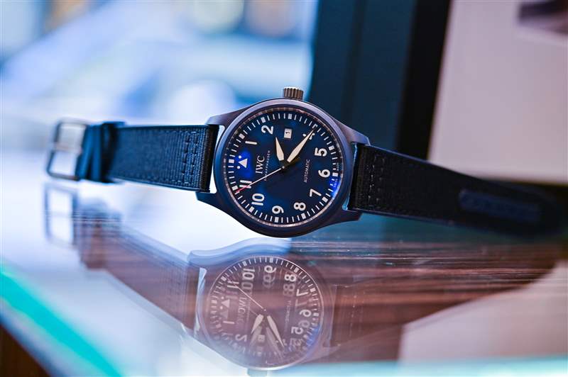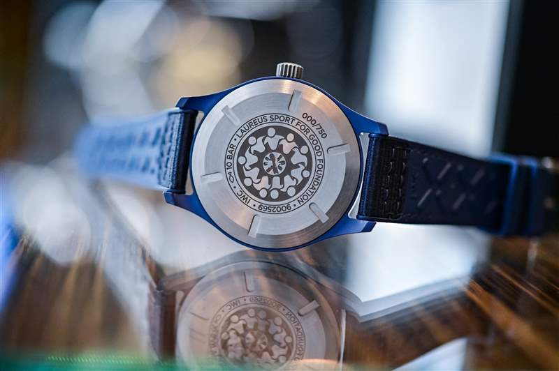 這款萬國飛行員系列IW328101 “勞倫斯體育公益基金會(huì)”特別版腕表僅會(huì)限量發(fā)行750枚,它所搭配的是一條帶有橡膠內(nèi)襯的藍(lán)色織物表帶