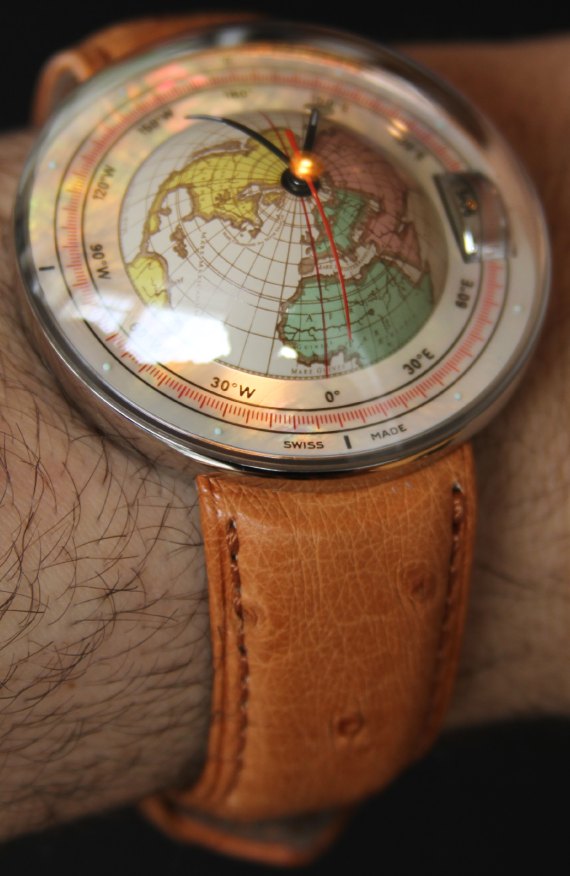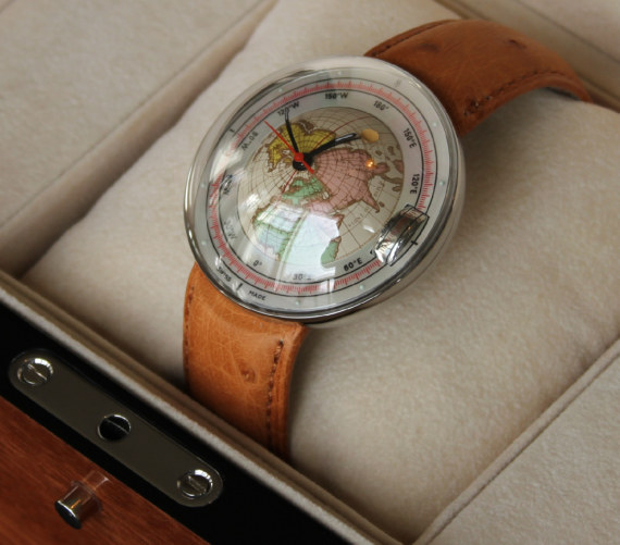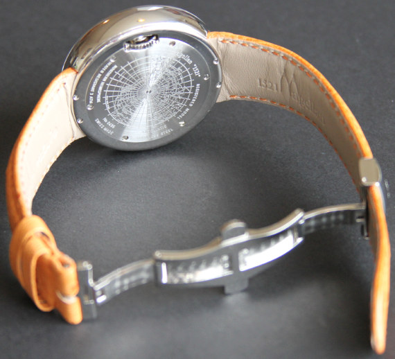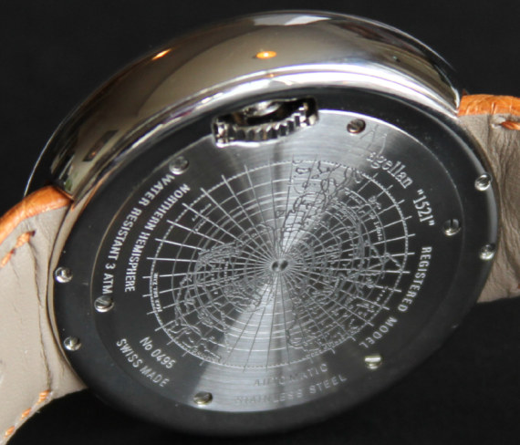 使手表在您的手腕上看起來如此獨特的一個事實是表殼的風(fēng)格(除了顯眼的地球儀)。它沒有可見的表冠,也沒有凸耳。這使手表看起來更干凈。厚實的表帶直接固定在表殼上,表冠與刻度環(huán)融為一體。從表盤上看,您可以看到表冠所在的珍珠母貝刻度戒指上方有一個駝峰。您必須進入手表的后部才能操作表冠。它實際上比聽起來更容易使用。在查看手表背面時,您可以獲得另一張地圖,精美地刻在表背上。沒有什么比手表背面更合適的了。