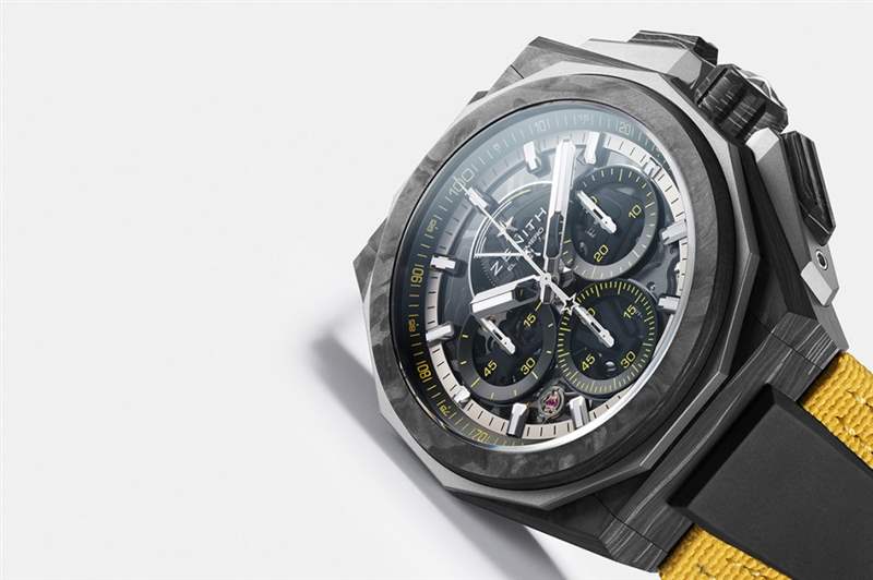 這新表名為Extreme E “Desert X Prix” Edition腕表,是DEFY Extreme Carbon特別版的其中一款,此獨(dú)家系列將為本賽季的每一輪比賽推出一款限量版作品,而今年的Extreme E將舉辦五輪賽事,首站為在沙地阿拉伯新未來城舉辦的Desert X Prix。所以Zenith就會從這五輪賽事截然不同的X Prix越野賽道汲取靈感,以DEFY Extreme 1/100秒計時腕表為藍(lán)本,設(shè)計了五款獨(dú)家特別版作品,向五輪賽事致敬。