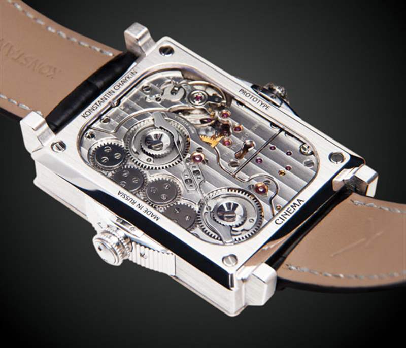 Cinema 手表最美妙的地方可能是它的設計類似于老式電影攝影機和放映機。康斯坦丁·查金 (Konstantin Chaykin) 用一系列帶齒邊緣的方形外殼將拋光金屬與黑色表面混合在一起,通過各種旋鈕、調節器和防滑表面重現復古相機的感覺。忠實于概念,Cinema 表殼采用鋼質、琺瑯和黃銅材質。表殼寬 37 毫米,高 47 毫米,厚度僅為 12.2 毫米。廣告留言廣告信息結束