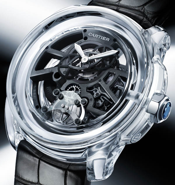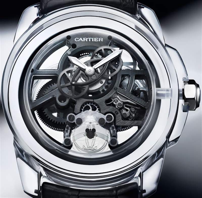 外殼沒有將其固定在一起的螺釘。事實上,它也沒有真正的空氣。這是我聽說的第一款具有真空密封內腔的手表。手表的底蓋被真空吸到表殼的其余部分——所以不要試圖撬開它。手表中 99.5% 的無空氣空間減少了空氣引起的摩擦——主要是通過擒縱機構。根據卡地亞 (Cartier) 的說法,從表殼中去除空氣幾乎可以完全去除因空氣摩擦而損失的能量,從而顯著提高機芯的能量效率。很酷。盡管當您考慮其中的含義時,并發癥會增加。這些都是小事,例如如何密封表殼、如何調整機芯以及無空氣空間如何影響機芯。簡而言之,卡地亞不得不為一些東西申請專利,去除機芯上的所有潤滑劑,并使用一些幾乎無摩擦且不需要油的奇特新材料。比標準硅更先進的東西。