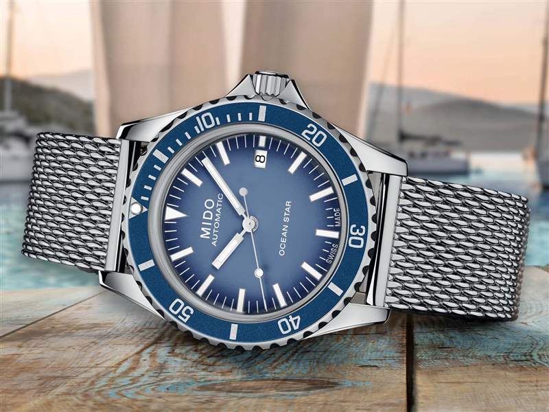Mido?剛剛推出一枚入門級潛水腕表新作——「Ocean Star Tribute Gradient Blue」,首次采用漸變煙熏藍色表盤,布局清爽易讀,尤其適合夏日佩戴。