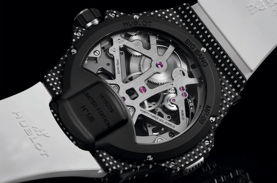 光能做出白色3D碳纖維還不夠,因為MP-09雙軸陀飛輪擁有立體前衛的造型,所以宇舶厲害的地方還包括可以用這種科技材質達到折曲、轉角、傾斜式平面等目的,用以呈現手表的霸氣外觀,甚至品牌也會確保這種新材質應用到未來主義的手表時,它的防水性與耐用性也能跟傳統材質如金屬、陶瓷等一樣可靠。