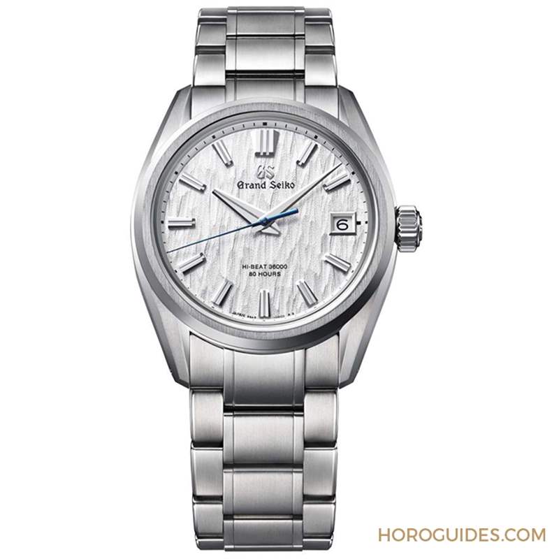 9SA5新機芯在2021年推出此款第一只非限量常規版,表盤紋理以雫石高級時計工坊的白樺樹森林的木皮為靈感,展現與自然天地共生的永恒,粗糙的盤面紋理搭配藍鋼秒針,展現GS一貫的日式美學。而GS同時也定義了此種凹槽指針、三排式12時位置時標以及表殼的樣式為Series 9,作為品牌未來Heritage系列的設計線之一。