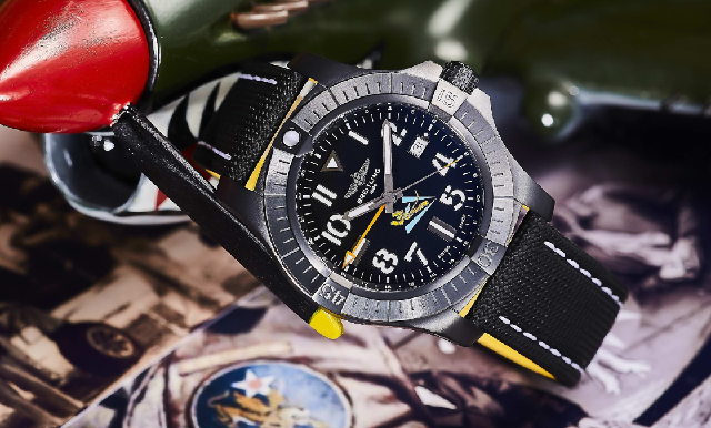 BREITLING百年靈推出Avenger AVG飛虎隊80周臺灣限量款,歡慶誕生于二戰期間的「飛虎隊」成立80周年。表款以2019年百年靈Avenge Automatic GMT 45 Night Mission復仇者夜間任務兩地時間腕表為原型,面盤下方飾以意義非凡的飛虎隊彩色識別標志,黑色DLC鈦金屬底蓋鐫刻志慶飛虎隊80周年的英文字樣,每只均附限量編號,全球限量63只,僅限臺灣發行,完美傳承飛虎隊在當年戰無不克的霸氣精神,以行動續寫與飛航歷史的不解之緣。