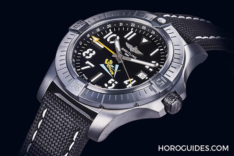 此表款的原型為2019年發表的百年靈Avenge Automatic GMT 45 Night Mission復仇者夜間任務兩地時間腕表,采用質輕堅硬的45毫米DLC涂層鈦金屬表殼,具備300米的強悍防水實力。搭載黑色面盤,具備中央時針、分針和秒針,以及指示第二時區的時針,白色阿拉伯數字時標靈感源自航空母艦甲板上的鋼印體數字,指針和時標涂有Super-LumiNova?螢光涂層,在任何照明條件下均可輕松讀取時間。隱身于表殼之中的百年靈自動上鏈32型自動機械機芯,動力儲存約42小時,經瑞士官方天文臺(COSC)認證,搭配穿扣式黑色或卡其色軍用表帶。