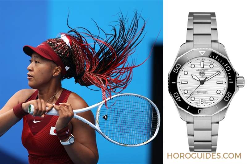紅色辮子頭、紅色球衣與護腕,然后再配上白色球拍與白色腕表,日本網球選手大坂直美的出賽造型顯然是精心搭配過的,約莫是呼應日本國旗的紅白配色。擔任Tag Heuer品牌大使的她,手上配戴的自是出自Tag Heuer的表款-Aquaracer Professional 300。此表款原為精鋼鏈帶款,大坂直美配戴時另外替換為白色橡膠表帶。