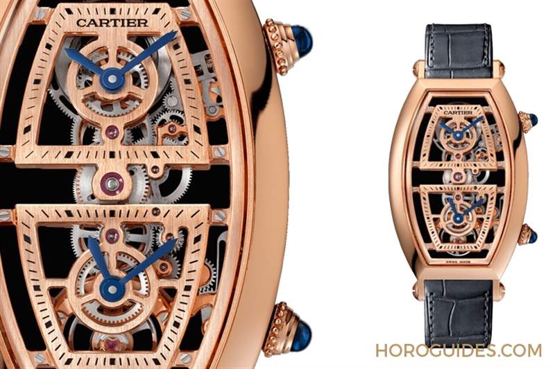 問世于1917年的Tank是Cartier旗下歷史最悠久的表款之一,早在1921年時就已衍伸推出線條更為瘦長的Tank Cintrée腕表,其表殼略帶弧度,可以服貼手腕,外型搶眼卻不失文氣,風格強烈卻又兼顧配戴起來親和舒適的特質。以Tank Cintrée為基礎所進化研發而來的Tank Cintrée鏤空腕表,搭載為了其特殊線條輪廓所研發的9917 MC手動上鏈機芯,呈現彎曲且垂直排列的輪系,這種設計在Cartier旗下表款中相對少見。有別于一般傳統鏤空腕表的表盤視覺效果多半過于繁瑣,Tank Cintrée鏤空腕表倒是相當俐落簡潔,有著一目了然的通透,表盤正中央是時分顯示,而環繞表盤的軌道式分鐘環是時標也是機芯夾板。