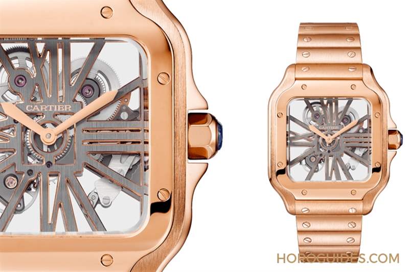 以方形表殼、螺釘裝飾為特色的Santos,是Cartier旗下最具識別度的表款之一,它不僅是一只百年經典,也是歷史上第一只飛行表。這款承載著百年歲月流轉的表款,問世以來,變化出無以數計的系列之作。近期發表的Santos鏤空腕表,搭載著Cartier 9619 MC型手動上鏈機械機芯,與眾不同的羅馬數字字形橋板,恰好也可顯示時與分,不只技術了得,而且巧思別具。表殼與鏈帶以18K玫瑰金打造,華美雅致的金屬色澤,烘托出這款鏤空機芯匠心獨具的難能可貴。